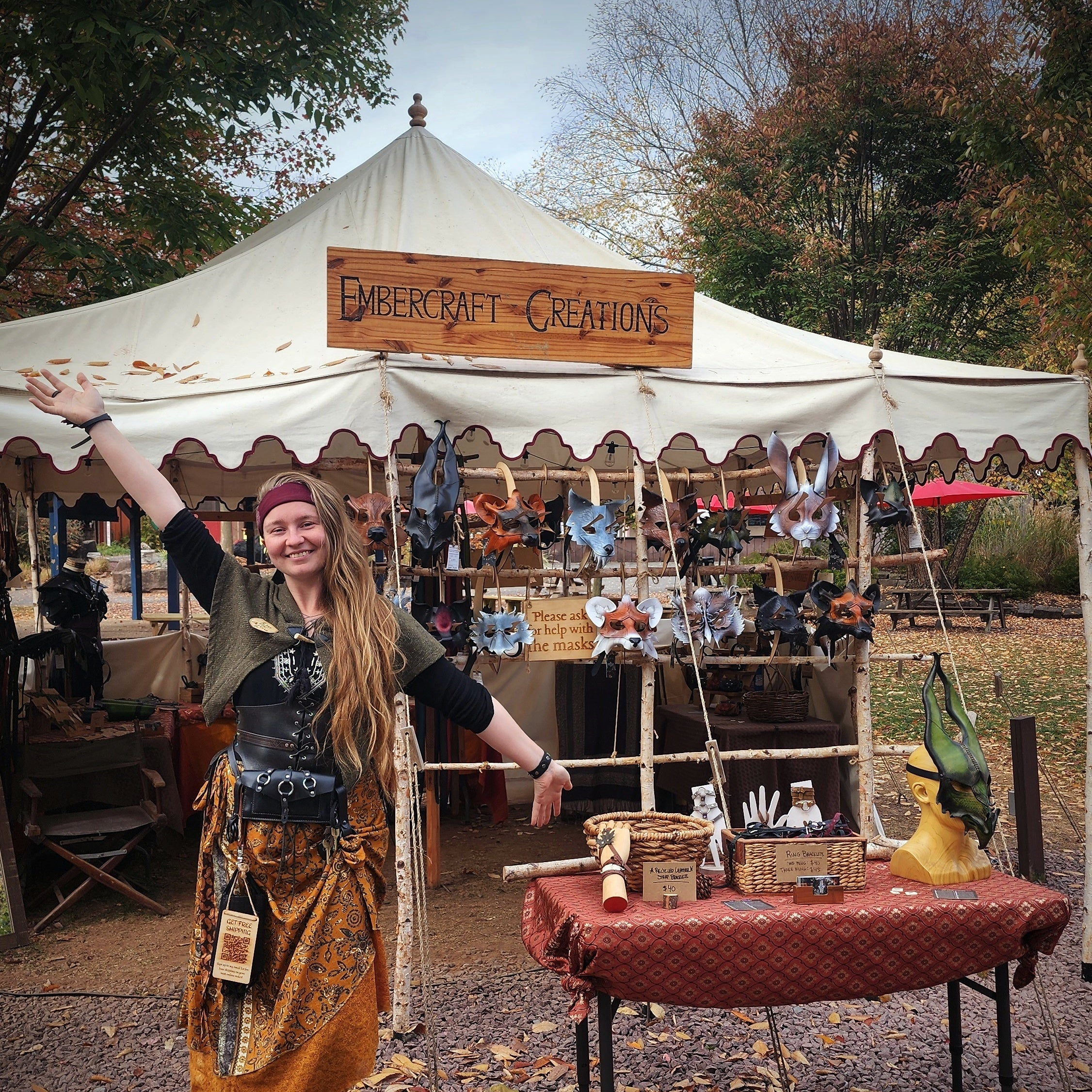I'm Marin, the owner and head artist of Embercraft Creations. I craft my designs in Boston, MA, with the help of my small team. You'll also find me modeling my work in my fantastical photoshoots, and selling my wares at Ren Faires.