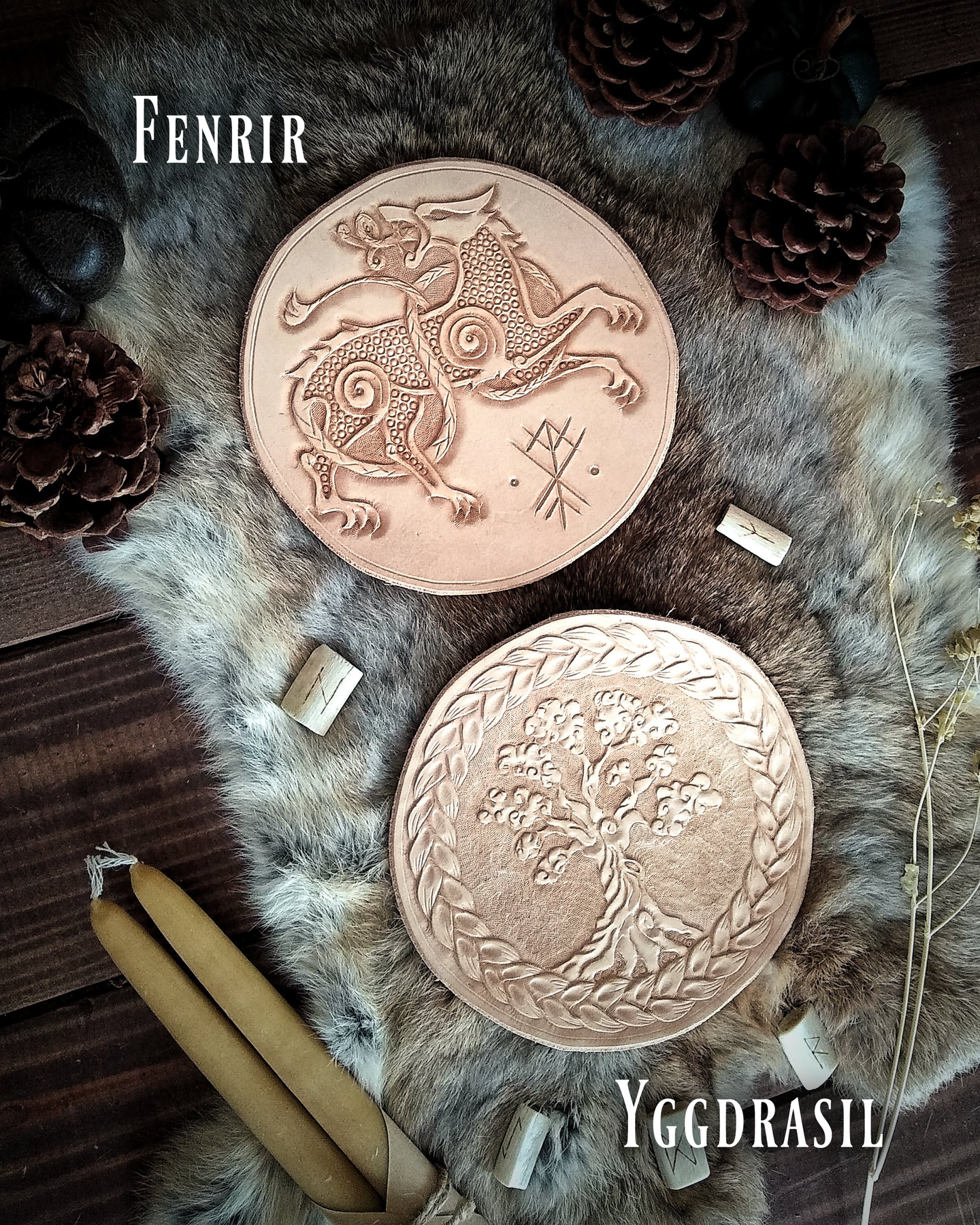"Fenrir" and "Yggdrasil" were designed by Swift Hammer Leather