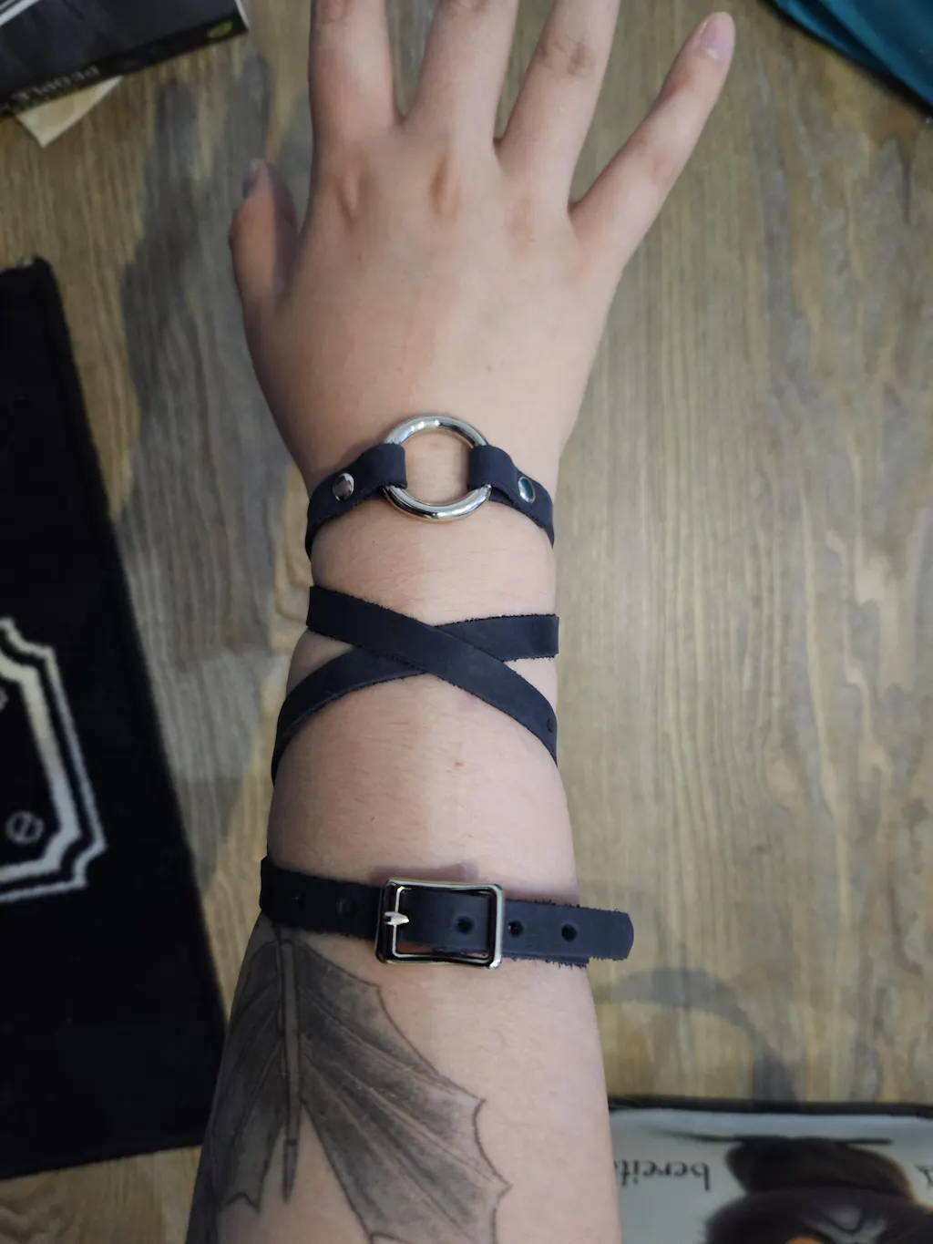This beautiful leather wrap bracelet is the perfect accessory for the modern goddess. This versatile piece feels right at home at a festival, a ritual, a club night, or everyday wear. Be sure to check out the "Ring Bracelet" for a matching set. Measuring in at just under 40 inches long, this universal-fit bracelet can also be worn as an armband, choker, or as other wrapped accessories.